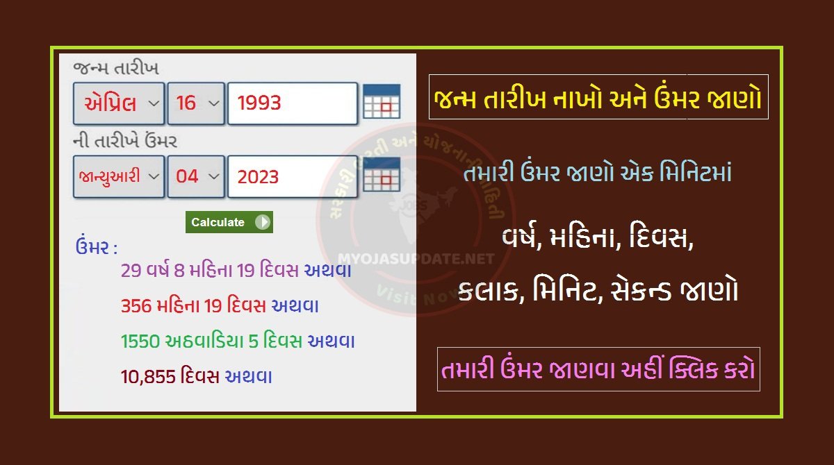 જન્મ તારીખ નાખો અને ઉંમર જાણોઅહીં ક્લિક કરો