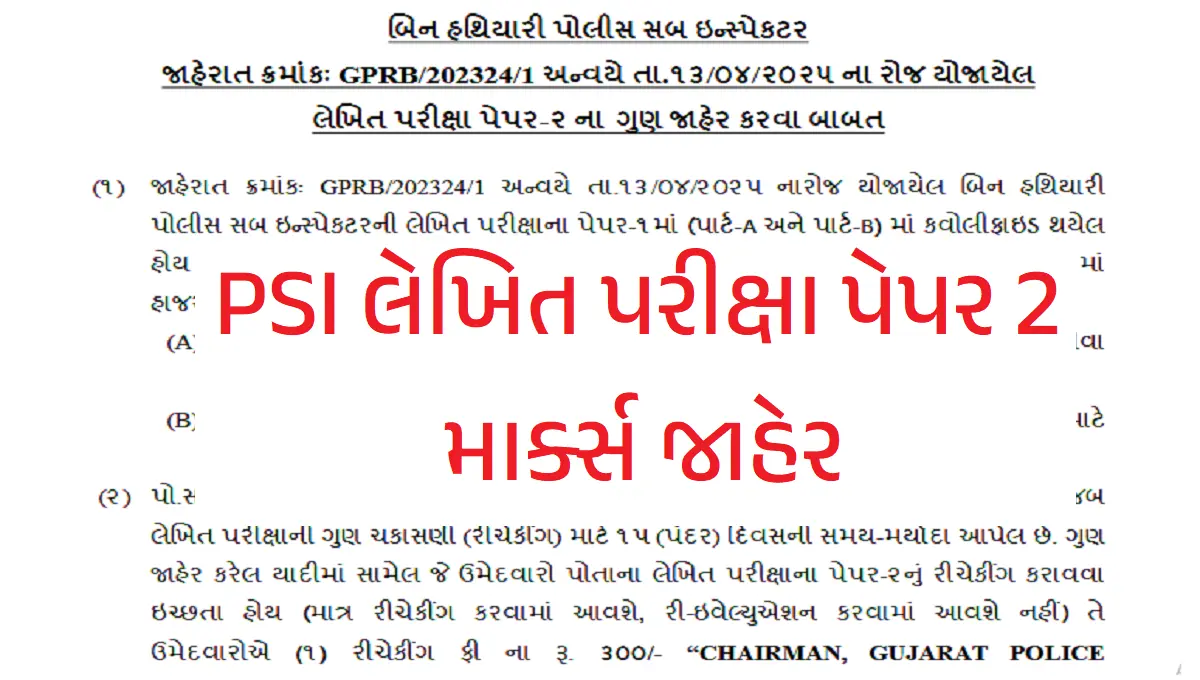 PSI પેપર-2 માર્ક્સ જાહેર 2025 | GPRB PSI Written Exam Paper 2 Marks Declare